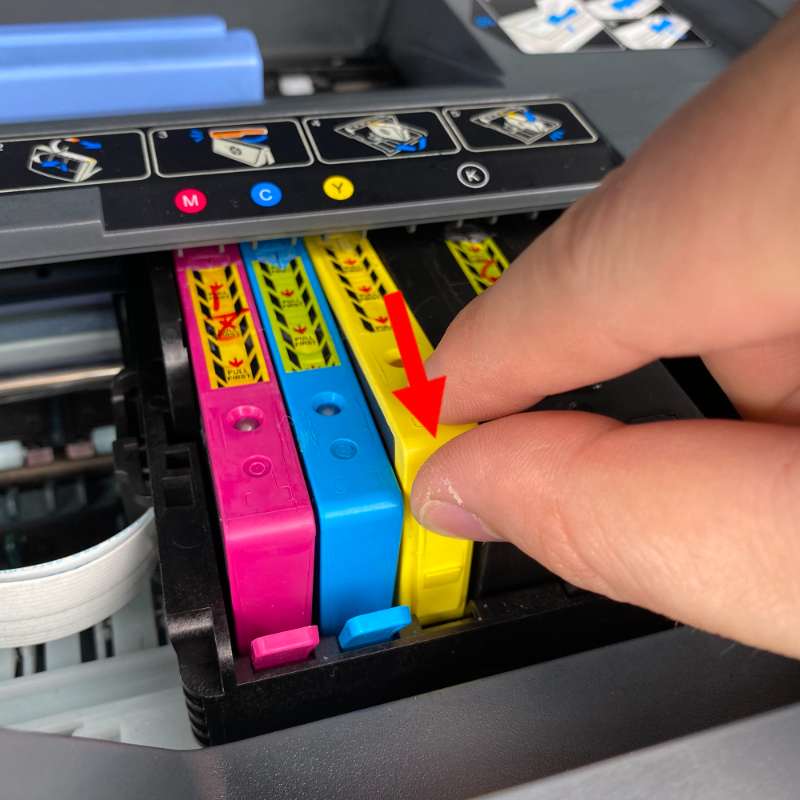 2. If the model of the ink cartridge matches the printer and the installtation is still not recognized, it needs to be taken out. You need to remove the ink cartridge to check whether the cartridge chip is intact. If there are obstruction or debris on the chip, it needs to be cleaned up, which may be the cause of the defect. The obstruction on the chip can be removed by gently wiping with an eraser.
