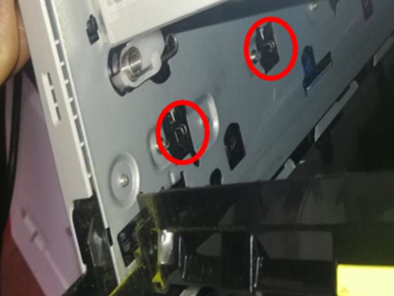 4. Check printer inside and make sure there is no toner powder stained on the conductive wire in contact with the metal steel and use tissues to clean the toner.