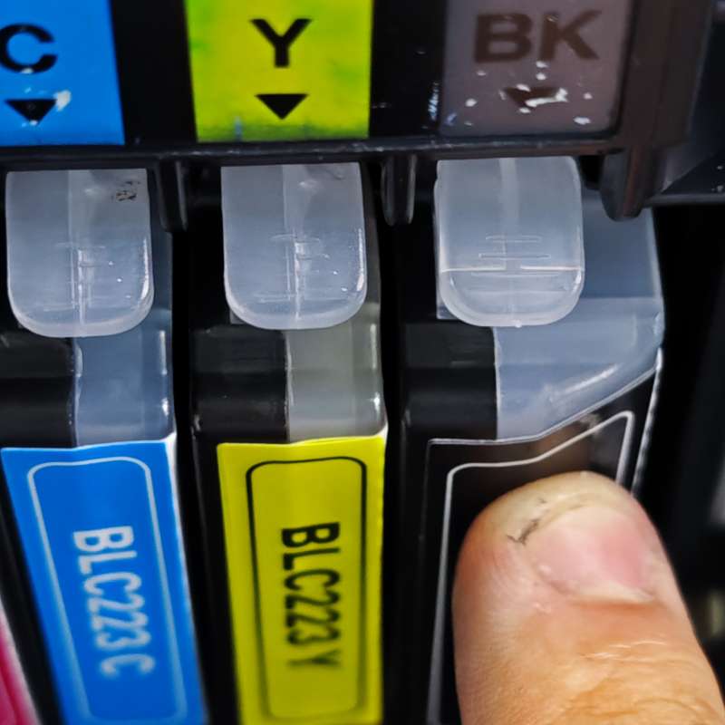 Firstly, remove the cartridge that caused the error from the cradle. Gently push out on the tab on the front of the cartridge. Reinstall the ink cartridge and you should hear it "click" into place. If the ink cartridge is still not being recognized, remove the ink cartridge from the cradle again. Confirm that there is a chip intact and in the correct location. If the chip is missing (Figure 2), you should return the cartridge to the place of purchase. If the chip is in place, you may need to clear it from any kind of obstruction or debris as this could be the cause of the error.