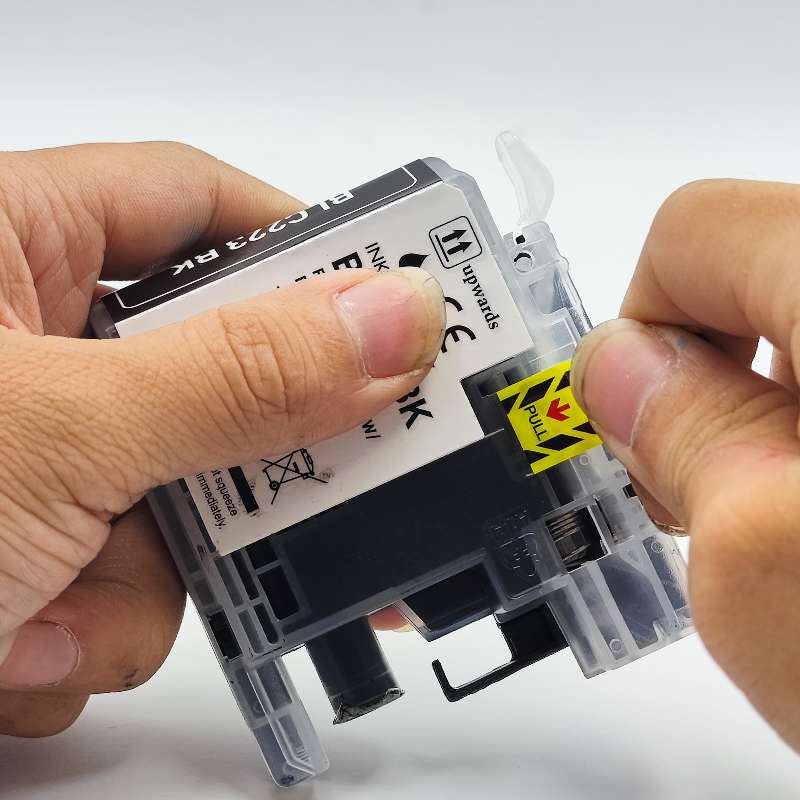If One of these Two criteria do Not match, you have most likely received the incorrect ink cartridge for the printer. Please visit our Printer Compatibility page to assure the ink cartridges required for your printer. After confirming that your ink cartridge is correct for your printer, the first step is to remove the pull tab and clip from the cartridge. If it does not "click" into place, there is an easy solution to this problem. Gently pull the tap on the front of the cartridge (Figure 2). Reinstall the cartridge and you should hear it "click" into place. Follow any screen prompts that may appear. If your cartridge is still not fitting into the printer, you will need to confirm that the correct cartridge is supplied to your printer.