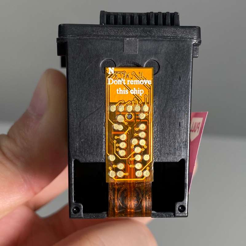 If you're encountering an error message stating that the ink cartridge can not be recognized, is an incompatible cartridge, the wrong ink cartridge is installed, or if your printer light has blinking lights, there may be an easy solution to fix the problem. Make sure that the cartridge pictured matches the cartridge you have in your hand or installed in your machine. The compatible ink cartridge model of the printer can be seen by opening the cover of the printer . Confirm that the printer you are using is listed in the printer compatibility table as a compatible printer for the cartridge you are trying to install. If One of these Two criteria do Not match, you have most likely received the incorrect ink cartridge for the printer. Please visit our Printer Compatibility page to determine what cartridge you need for your printer. After confirming that you have the correct cartridge for your printer, open the printer cover and remove the ink cartridge. After removing the cartridge, you will need to locate the copper contacts (Figure 1).