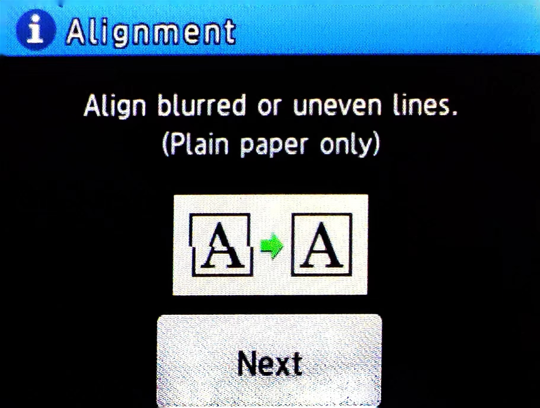 If the error persists, it may be necessary to perform a cleaning cycle to improve the print quality (Figure 5) and complete the alignment process. Every printer is different, so please consult your printer's user manual for instructions on performing a cleaning cycle on your printer. If you cannot perform the cleaning cycle, or if the alignment fails even after performing the cleaning cycle, please make sure the scanner glass is clean and free from fingerprints or debris (this is only available on certain models). If these steps do not allow the printer to align the ink cartridges, you will need to return the ink cartridges to the place of purchase.