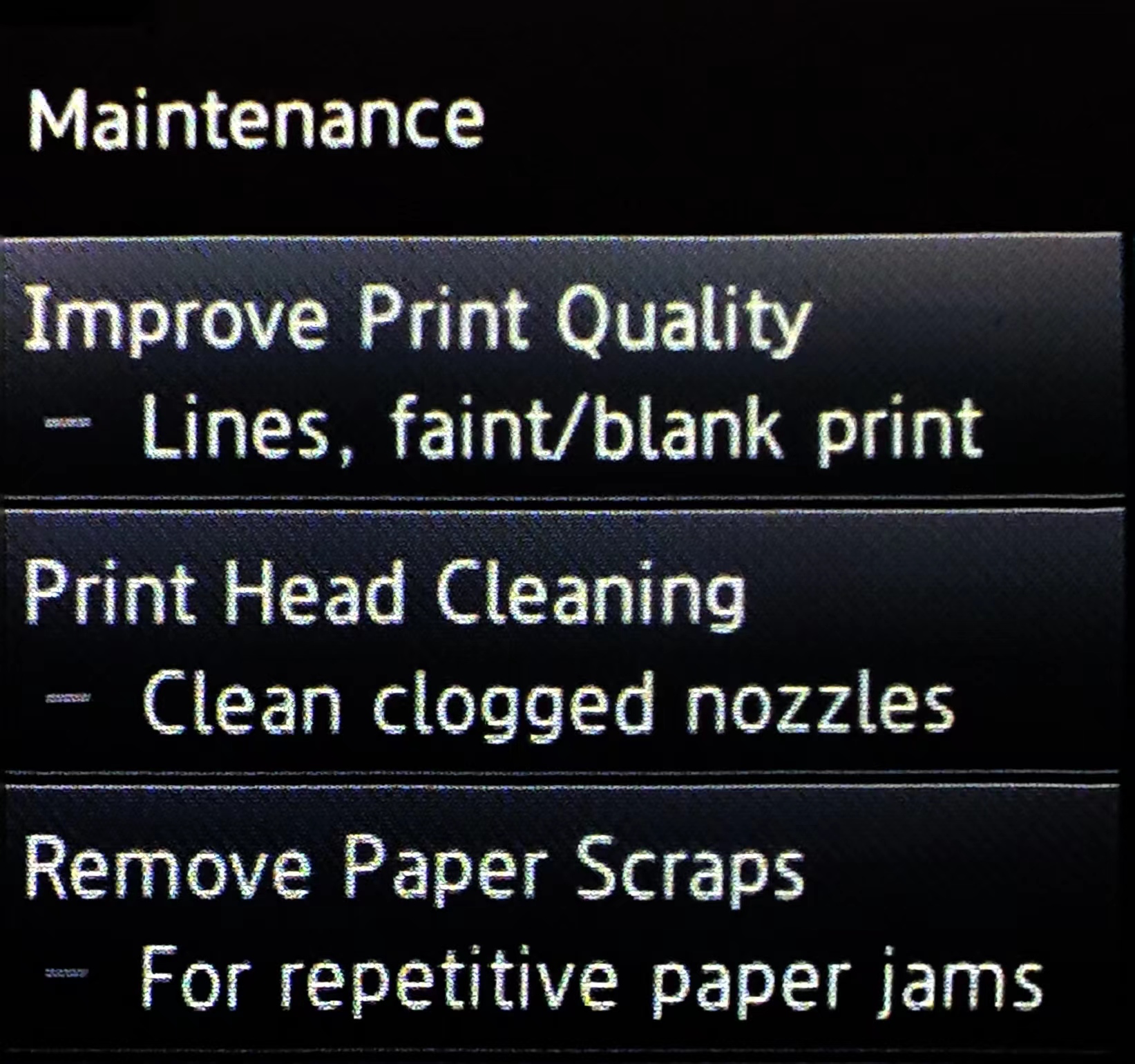 Select "Yes" and press "OK". Follow any on-screen prompts that may appear. After cleaning, a test page will be printed to let you confirm the status. If the print on your test page is satisfactory, you may return to the document you wish to print and resume printing. If the quality on the test page is still unsatisfactory, you can choose to perform a Deep Cleaning. Please be aware that cleaning the printhead does consume ink; and therefore, it should only be done when necessary. If the test page is not satisfactory after a cleaning cycle, you may need to replace the inkjet cartridges.