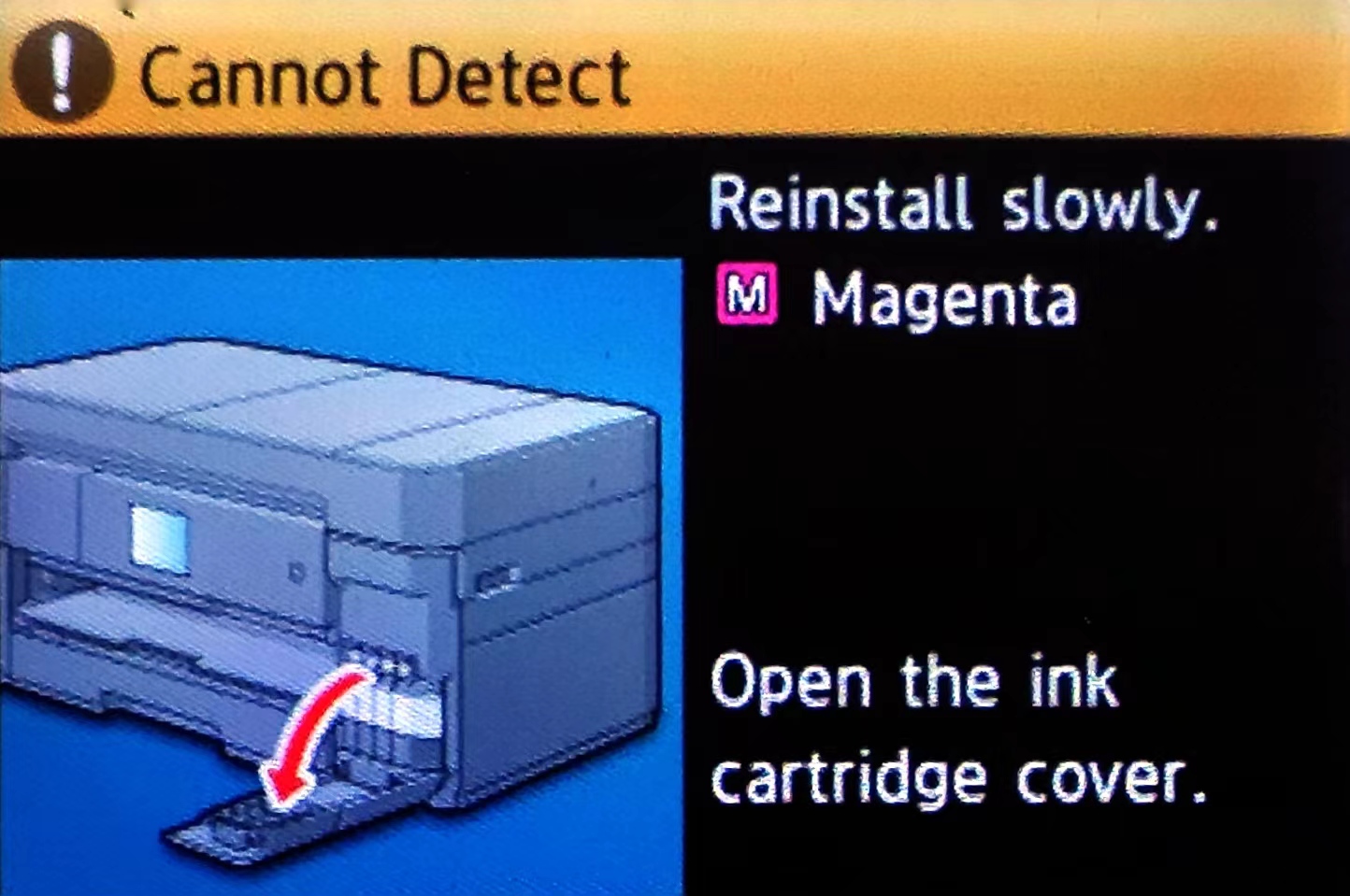 If you encounter an error message stating that "The following ink tank(s) cannot be recognized" (Figure 1), please try the following steps as possible solutions to resolve the problem.