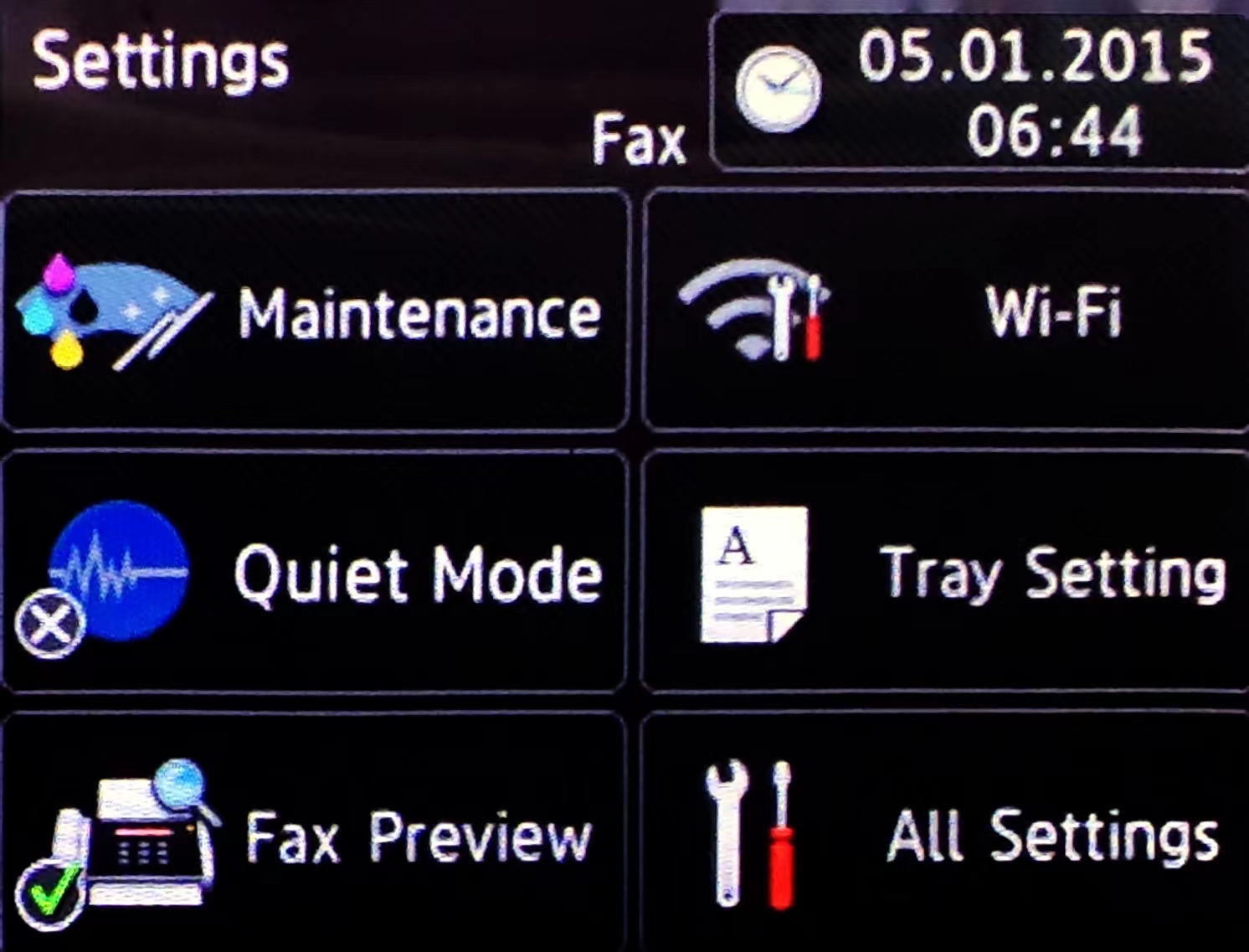On the printer's control panel, press the "Settings" button (Figure 2) and press "OK".