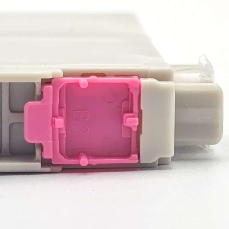 Firstly, remove the cartridge that caused the error from the cradle. Gently push out on the tab on the front of the cartridge. Reinstall the ink cartridge and you should hear it "click" into place. If the ink cartridge is still not being recognized, remove the ink cartridge from the cradle again. Confirm that there is a chip intact and in the correct location. If the chip is missing (Figure 2), you should return the cartridge to the place of purchase. If the chip is in place, you may need to clear it from any kind of obstruction or debris as this could be the cause of the error.